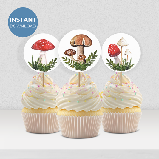 1st Birthday Fungi Cupcake Toppers: Printable Mushroom Party Decor 0004