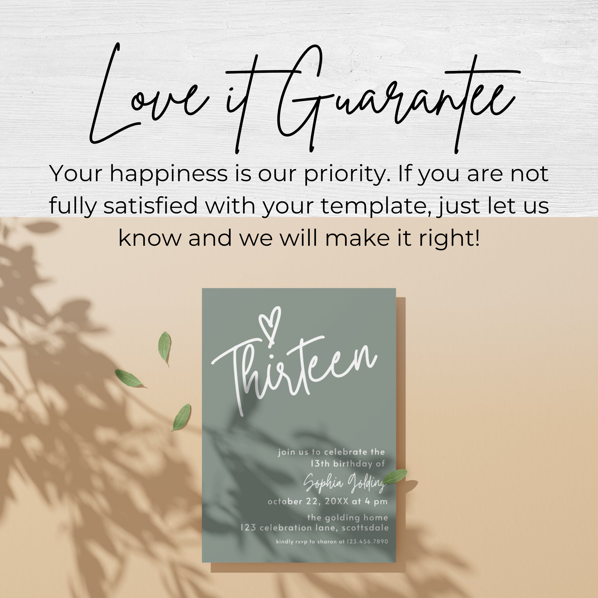 13th Birthday Photo Invitation Sage Green Thirteenth Birthday Invite for Teenager Simple Elegant Invitation Printable Template Modern 0003