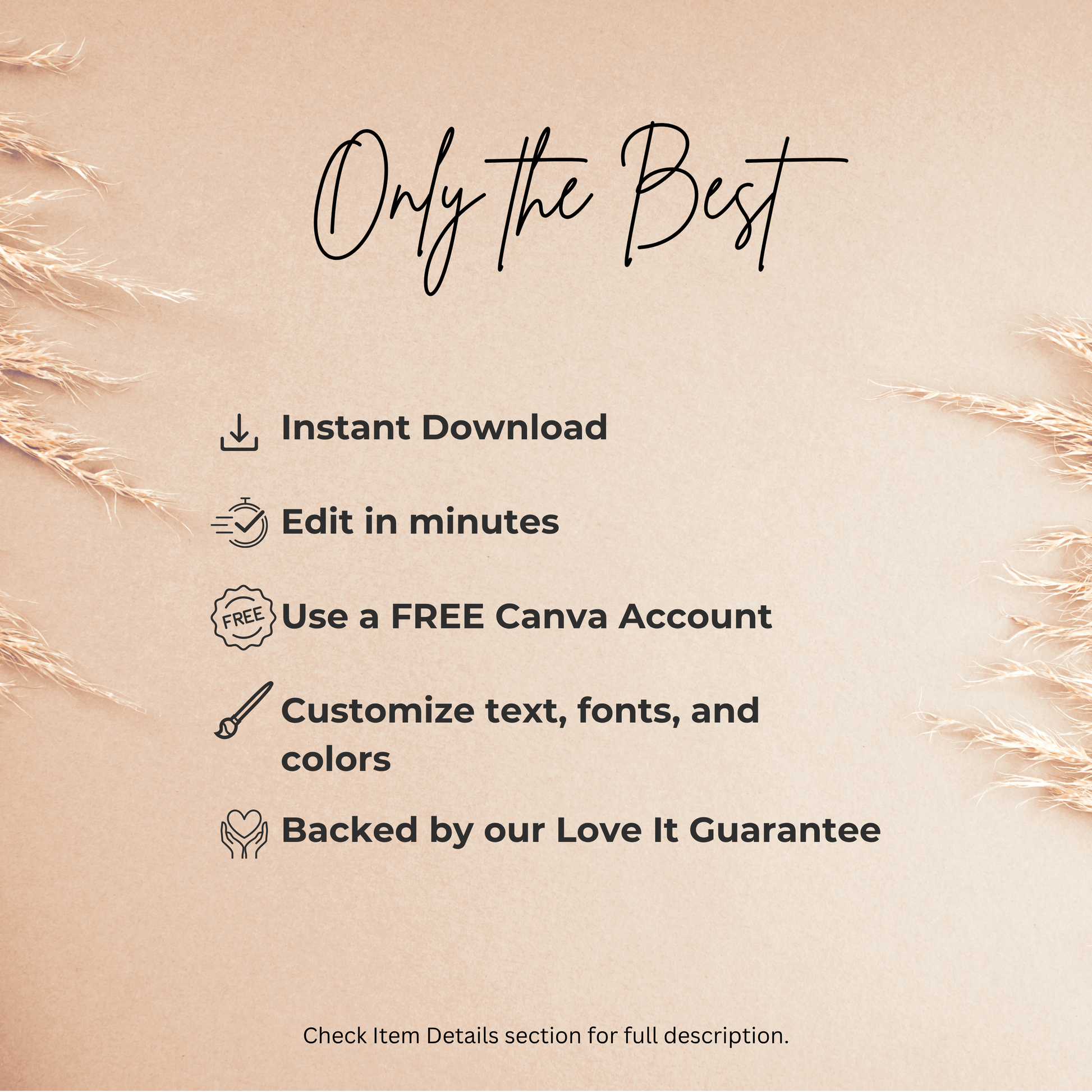 You will receive a PDF with a link to edit your digital design, no printed items will be shipped!