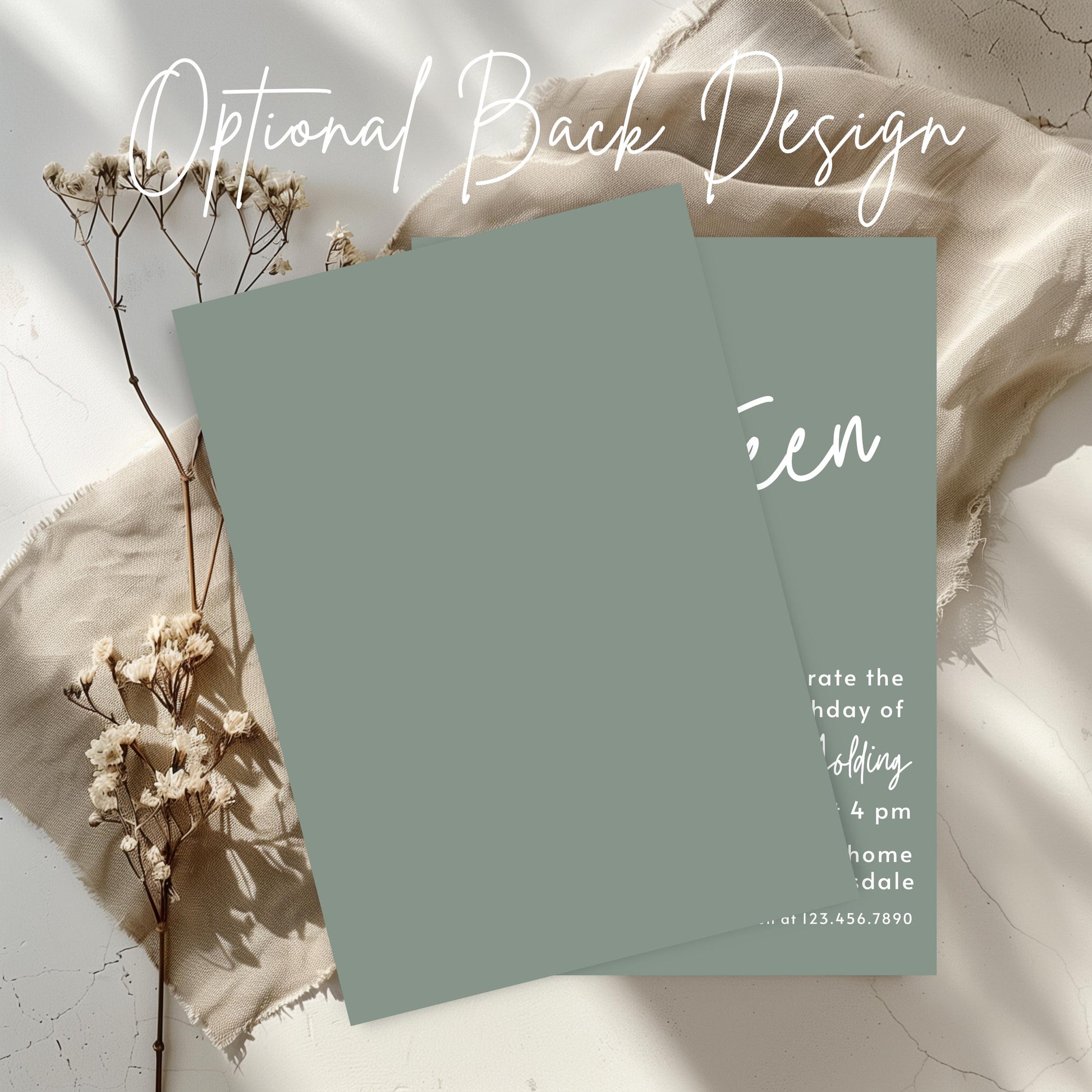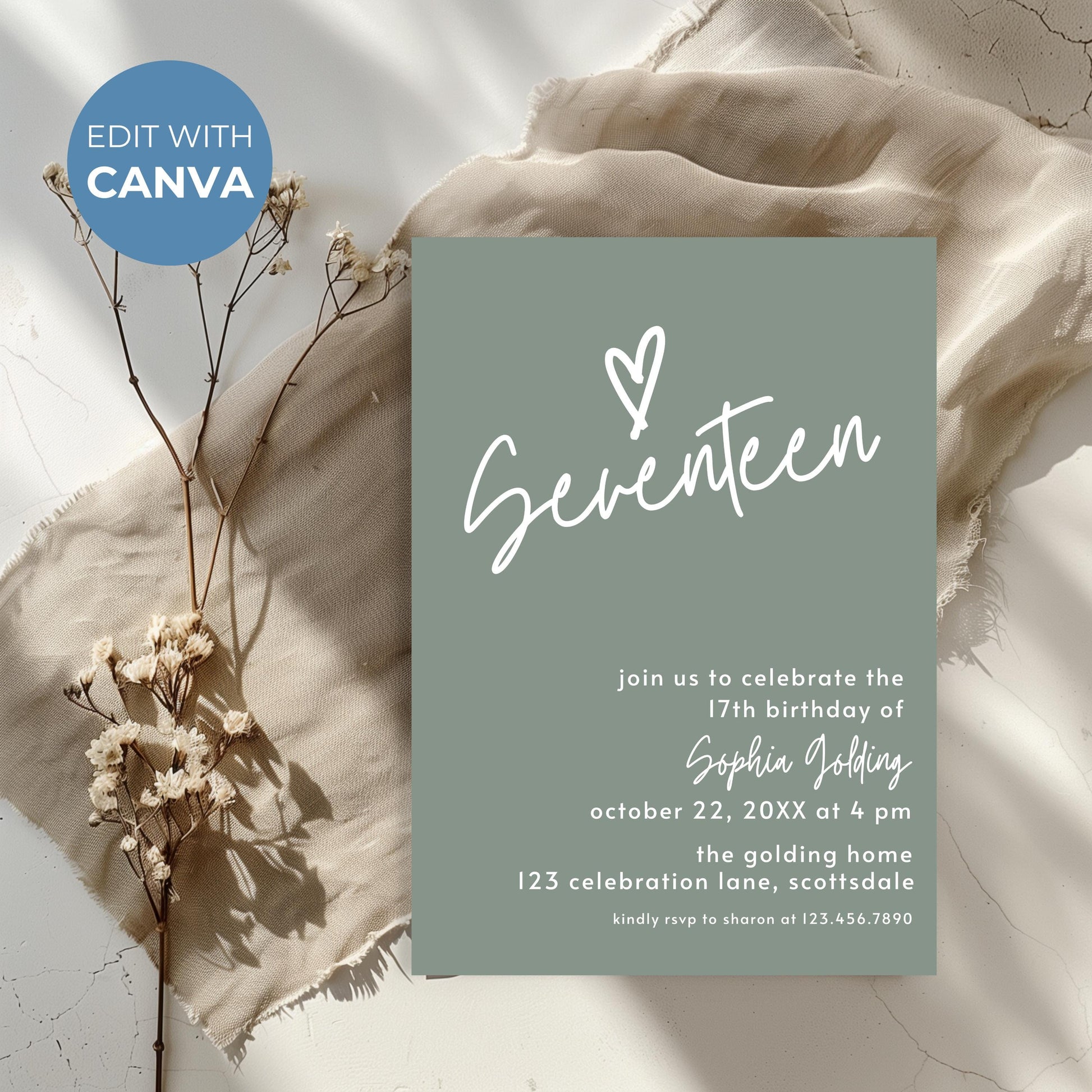 17th Birthday Invitation for Girl Sage Green Seventeen Invite Sage Green Birthday for Teenager Simple Modern Invitation Printable 0003