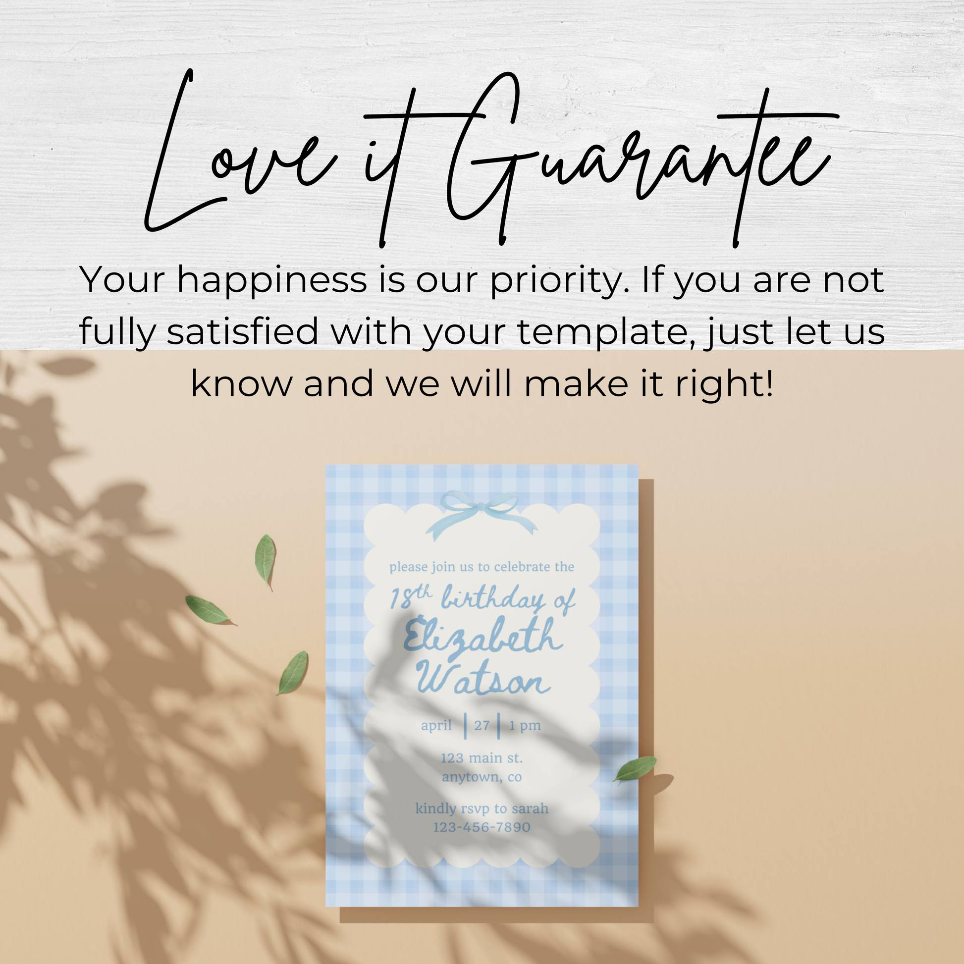18th Birthday Blue Gingham Invite Template: Simple Women's Invitation Printable 0012
