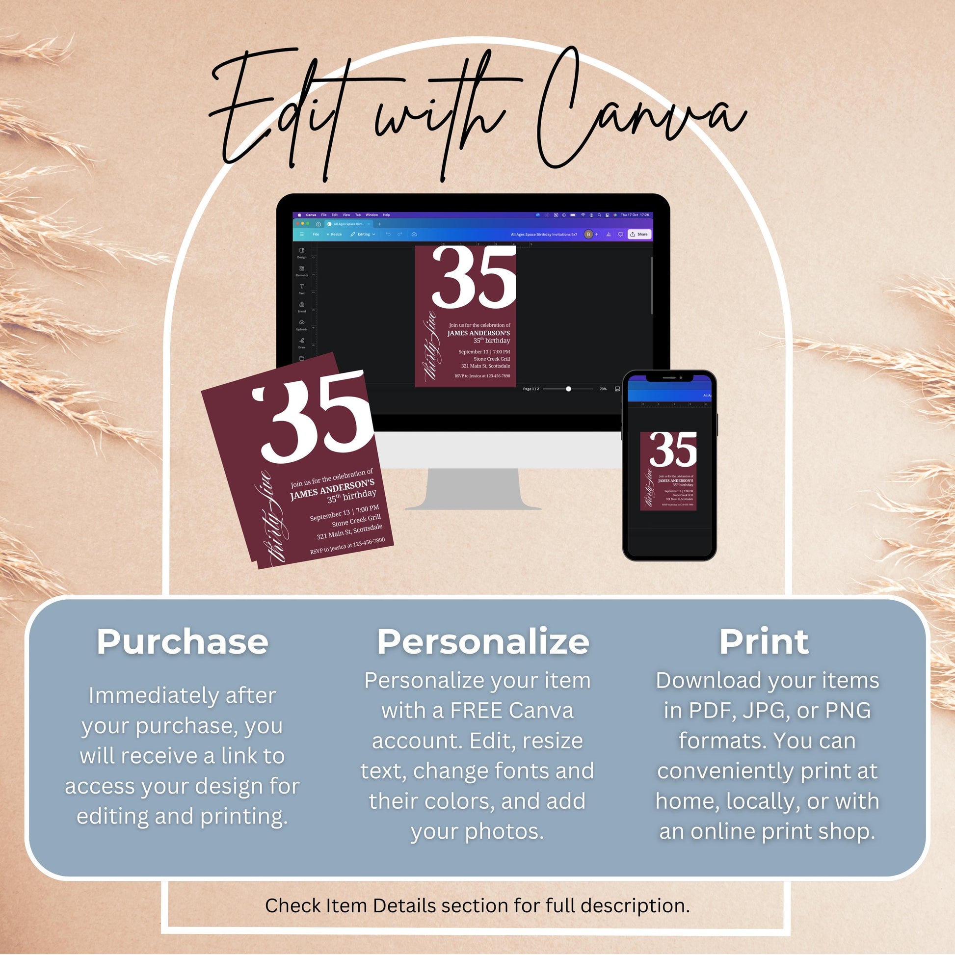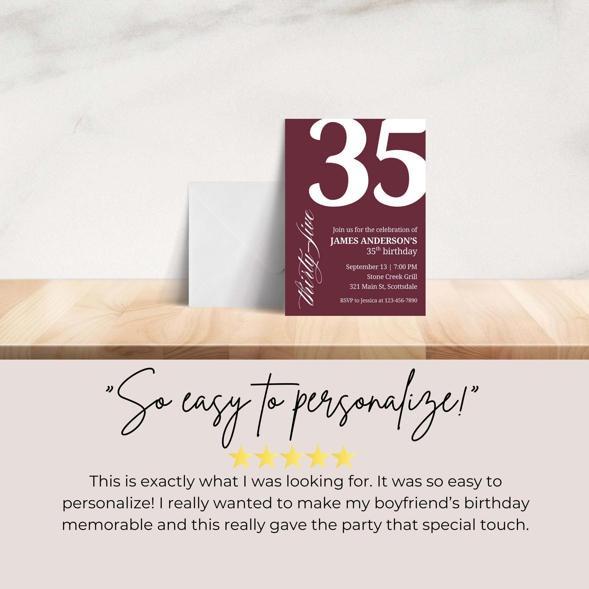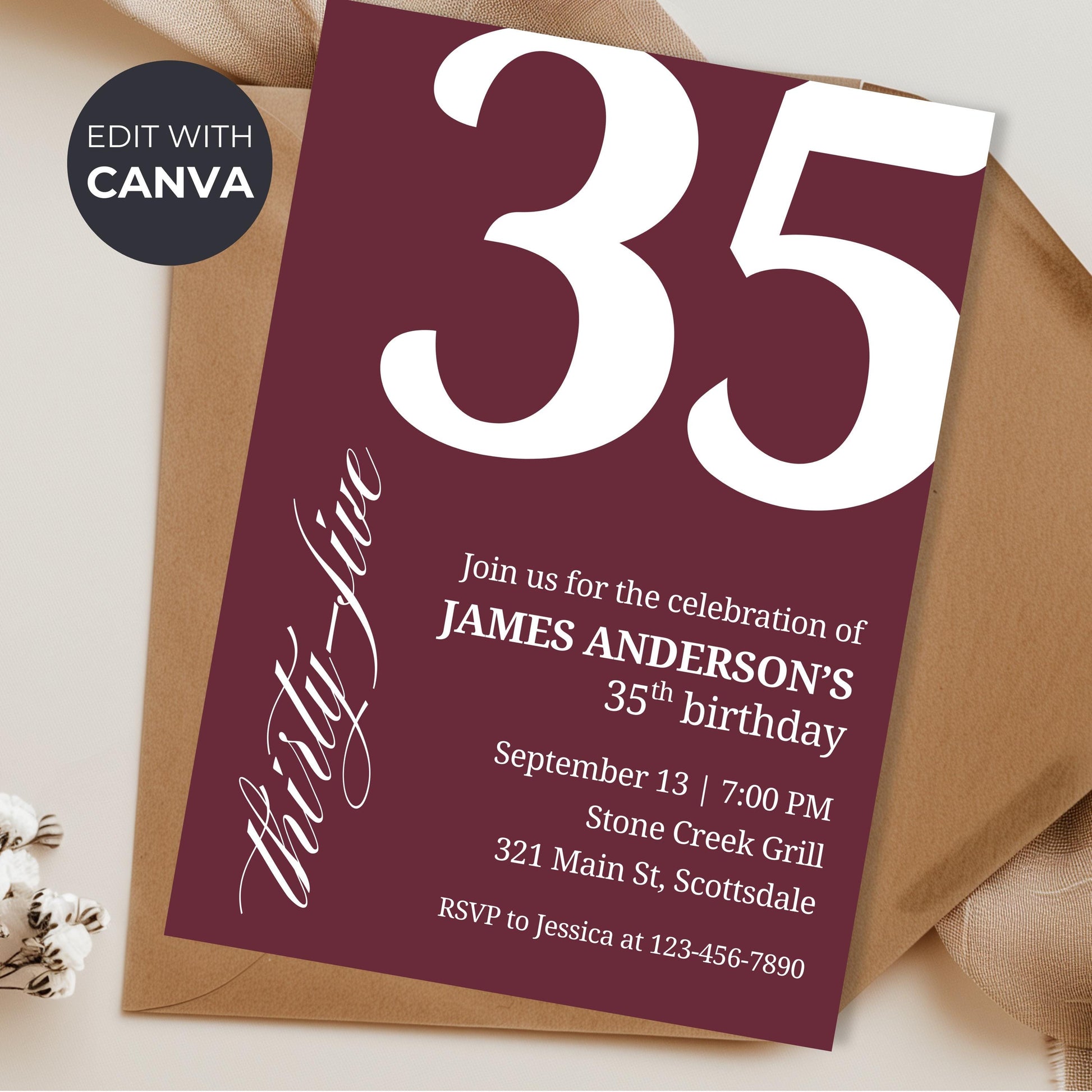 35th Birthday Invitation 35th Birthday Invite 35th Birthday for Him 35th Birthday Invitation for Him 35th Birthday Invitations for Men 0007