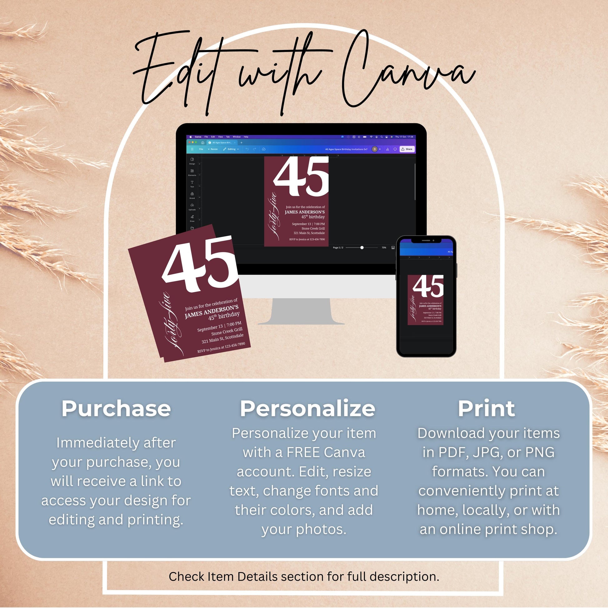 45th Birthday Invitation for Men 45th Birthday Invite 45th Birthday for Him 45th Birthday Invitation 45th Birthday Invitation for Him 0007