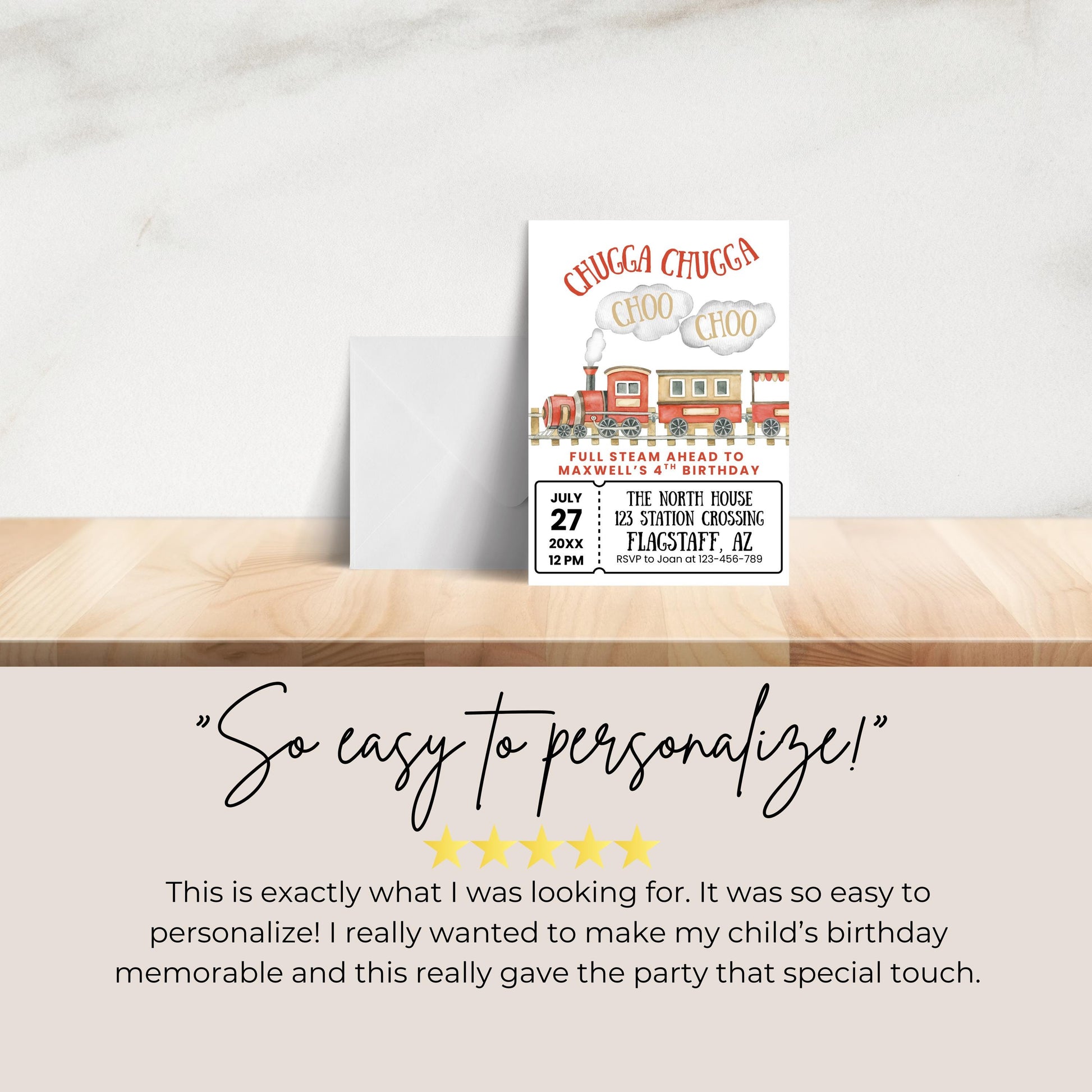 Chugga Chugga Choo Choo Birthday Invitation Train Party Birthday Invite Train All Aboard 4th Birthday Full Steam Ahead Fourth Birthday 0006