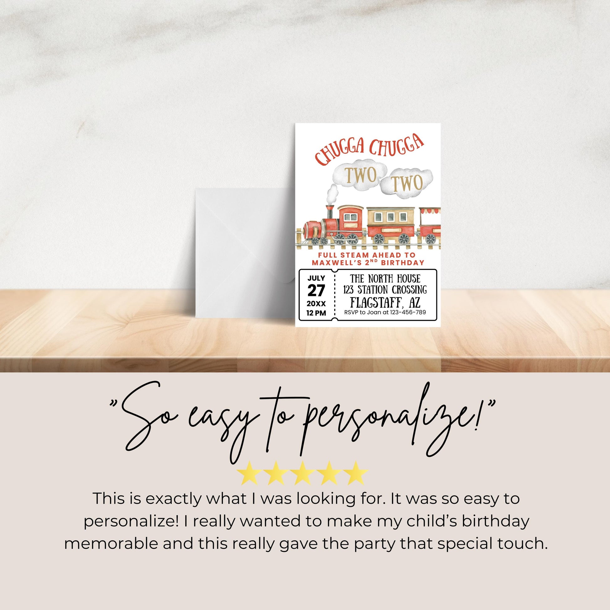 Chugga Chugga Two Two Birthday Invitation Train Party 2nd Birthday Invitation Train All Aboard Second Birthday Full Steam Ahead Boy 0006