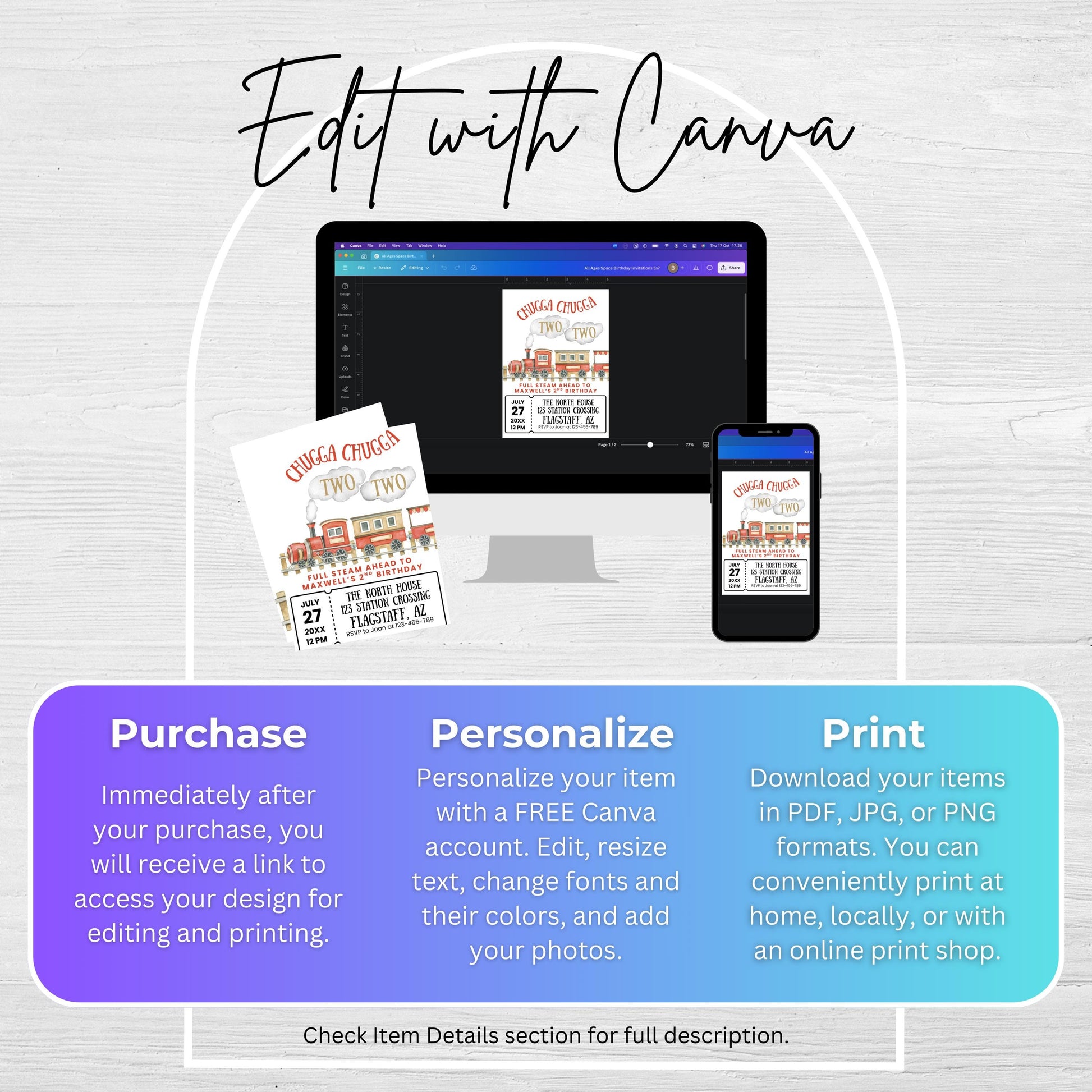You will receive a PDF with a link to edit your digital design, no printed items will be shipped!