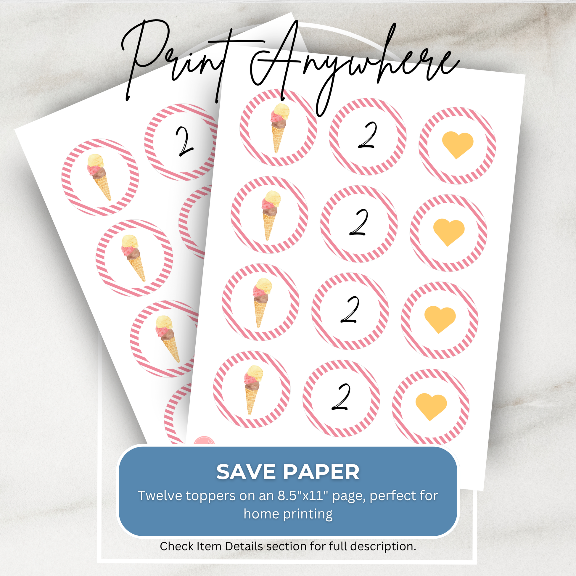 Cupcake Toppers 2nd Birthday Ice Cream Party Decorations Here's the Scoop Second Birthday Decor Party Supplies Two Sweet Birthday Cake 0002