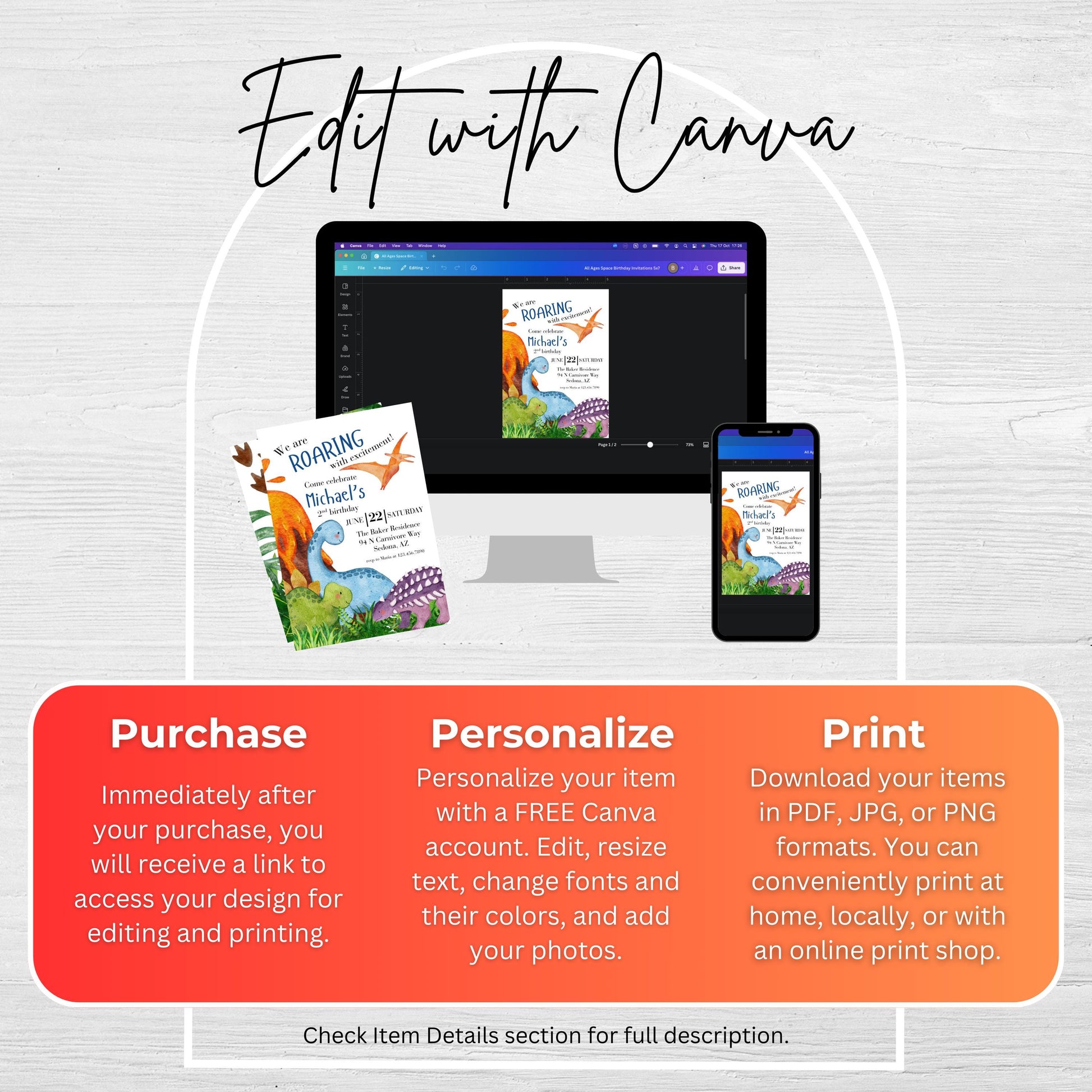 You will receive a PDF with a link to edit your digital design, no printed items will be shipped!