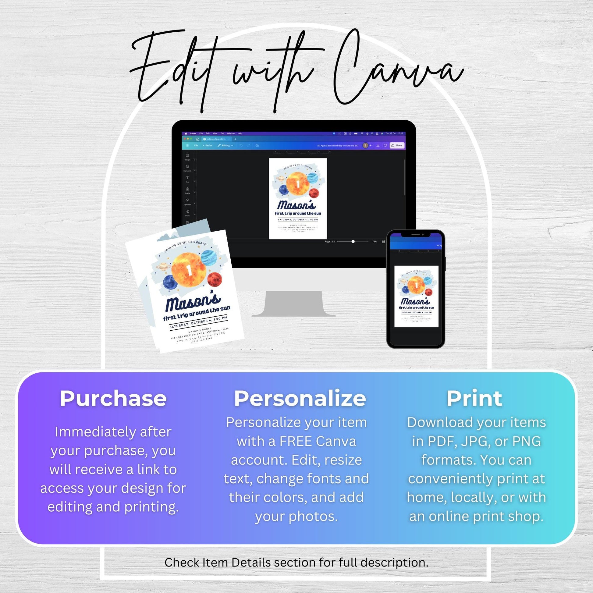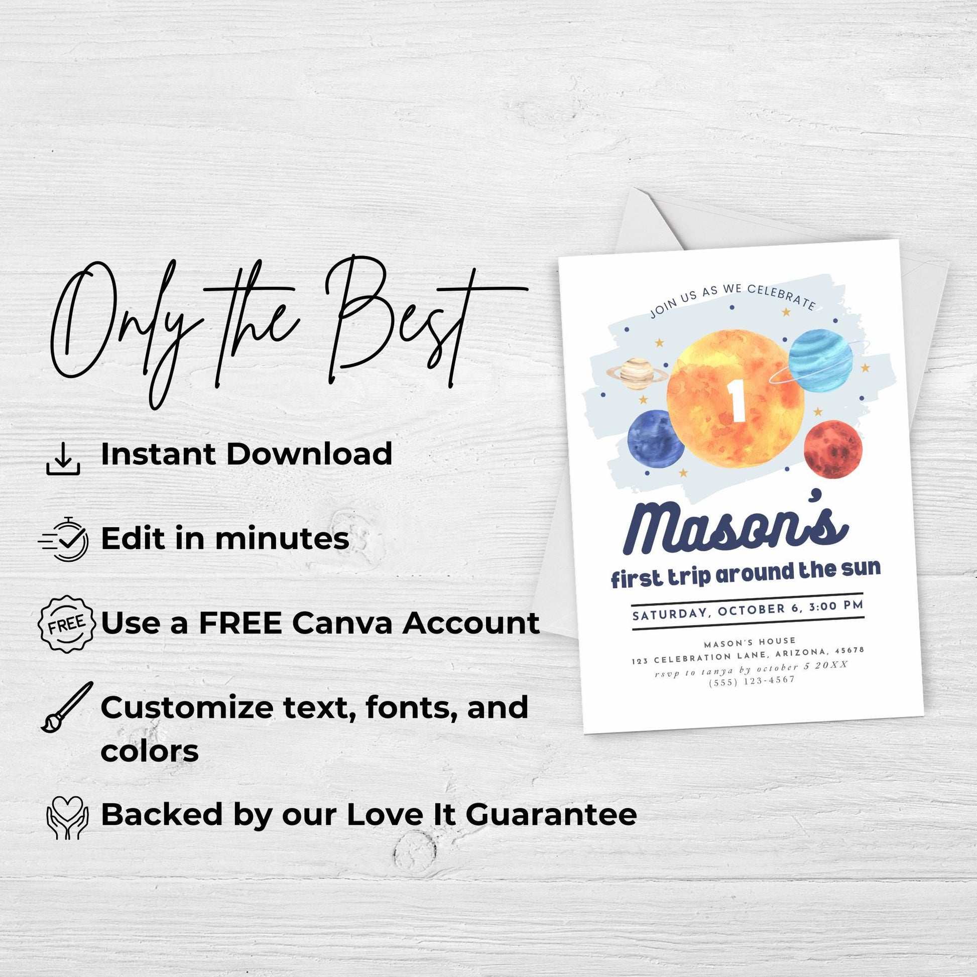 First Trip Around the Sun Birthday Invitation Space Party Editable Outer Space Invite Out of This World Galaxy Solar System Party 0001