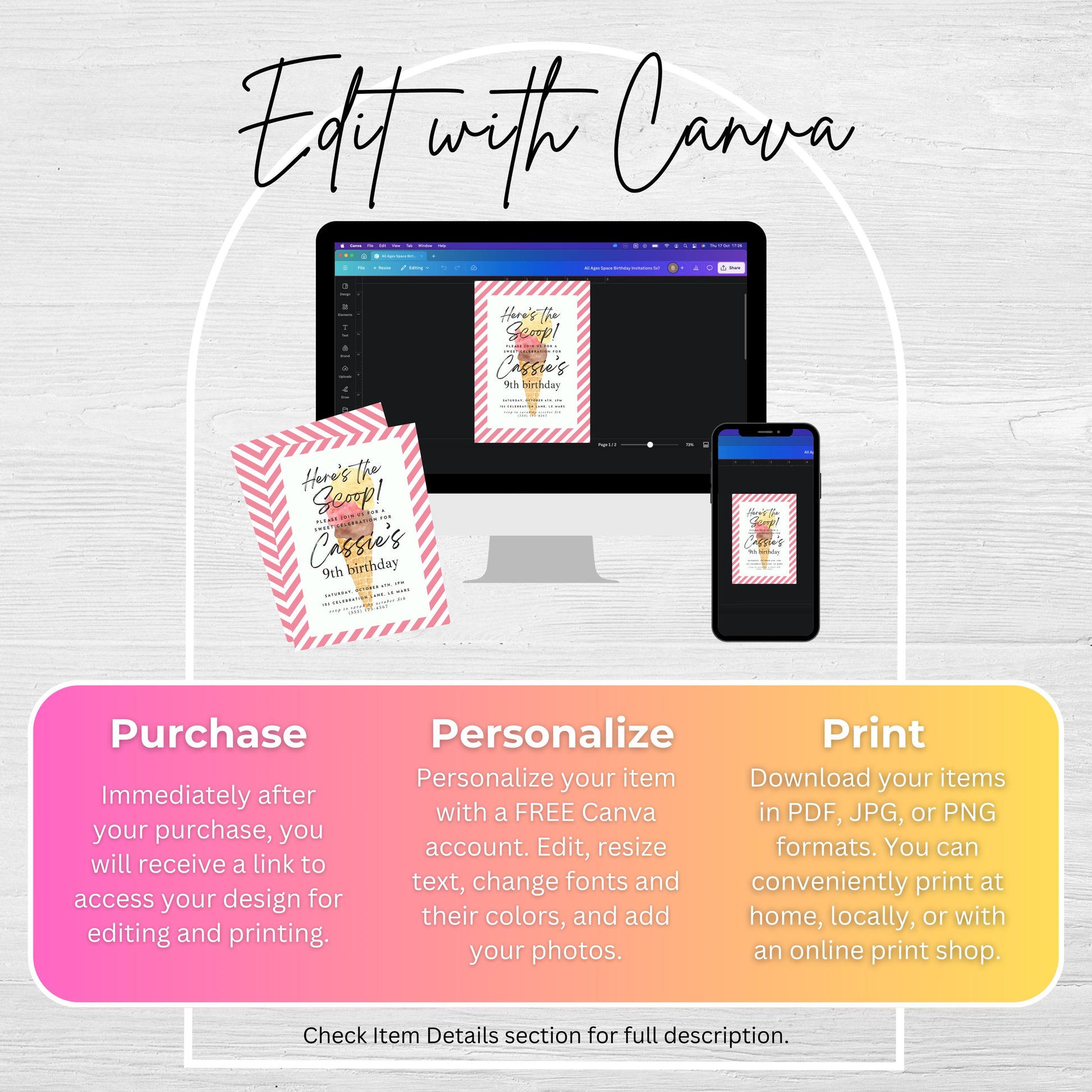 Here's the Scoop Invitation Ice Cream Birthday Party Invite Ninth Birthday Invite Template Girls Sweet Birthday Party 9th Birthday 0002