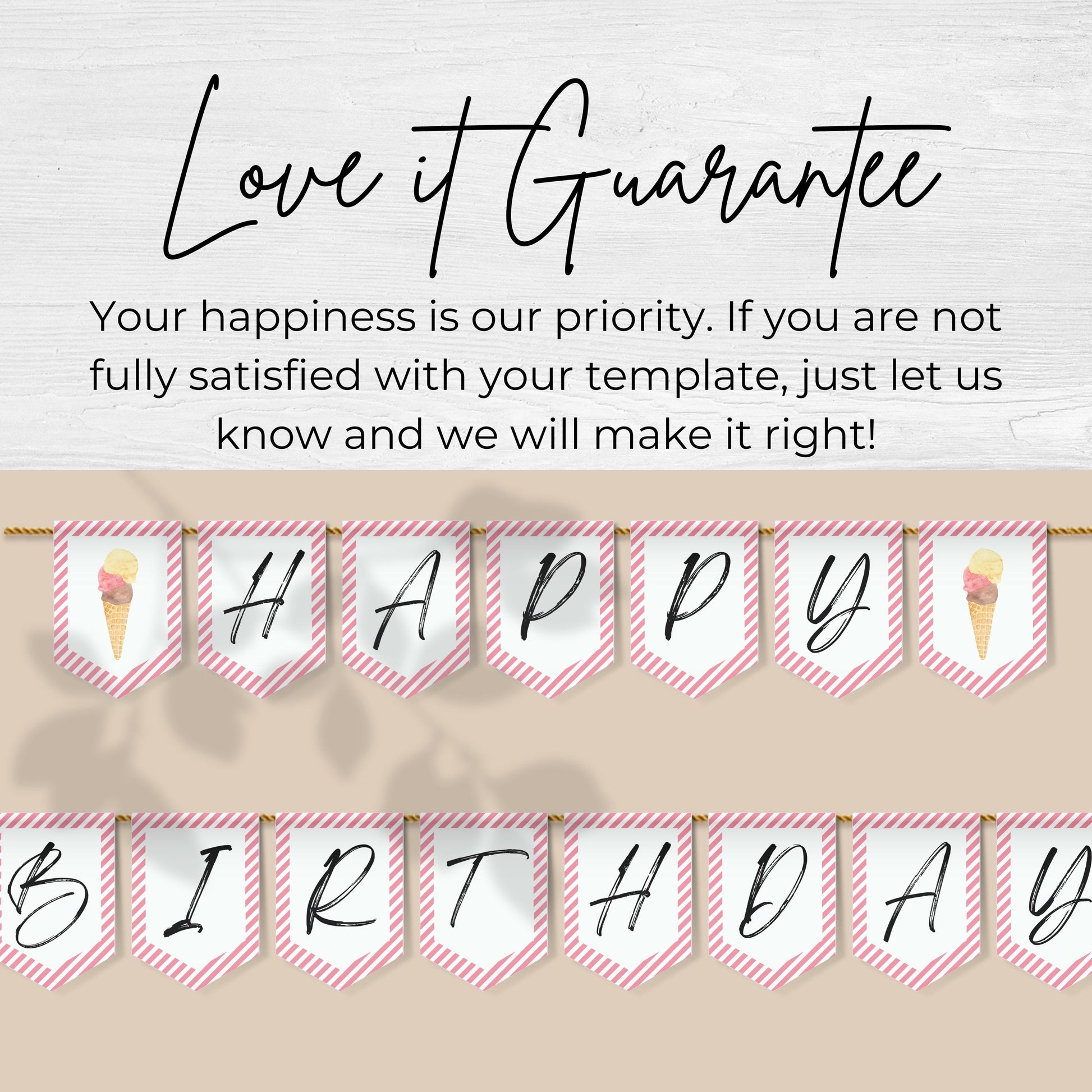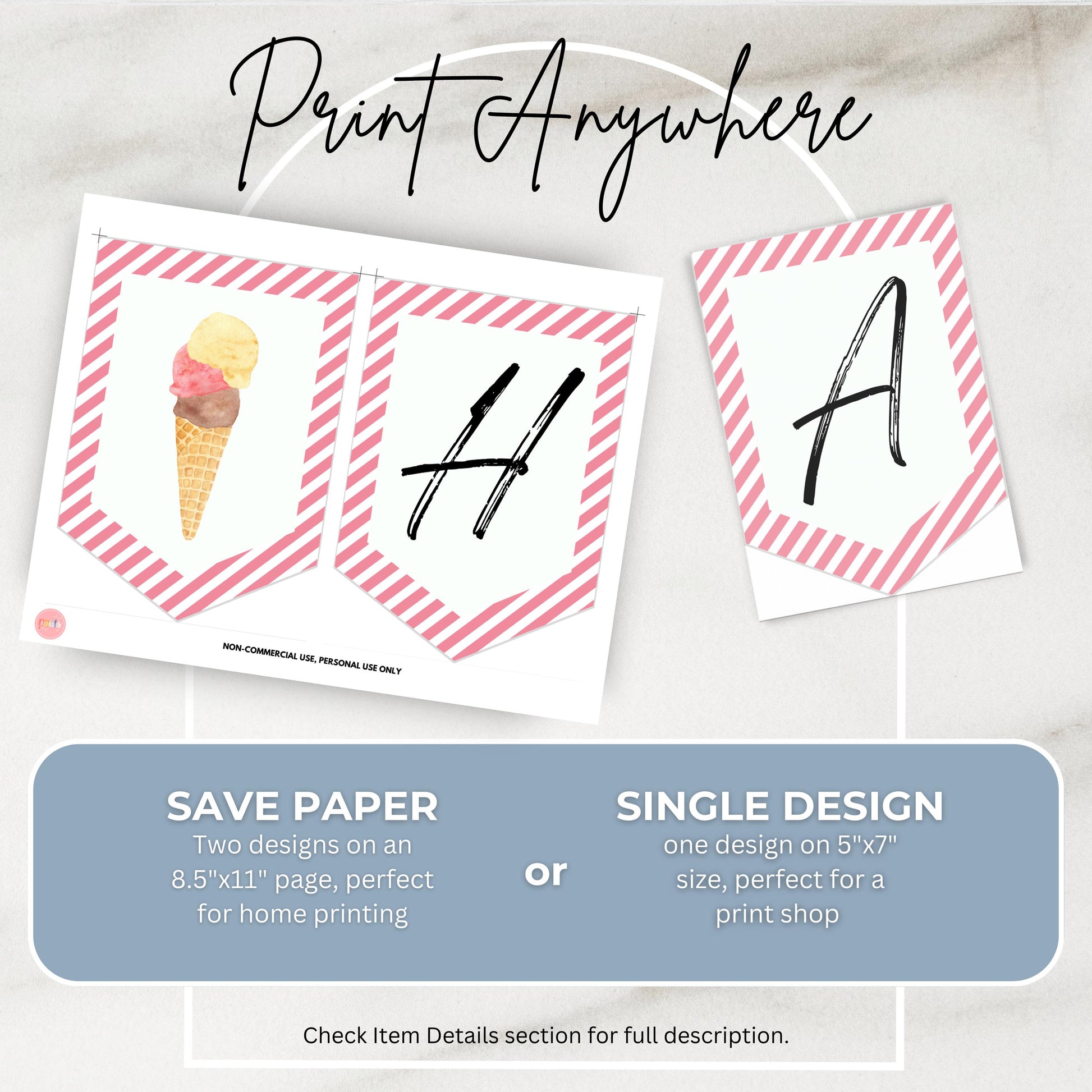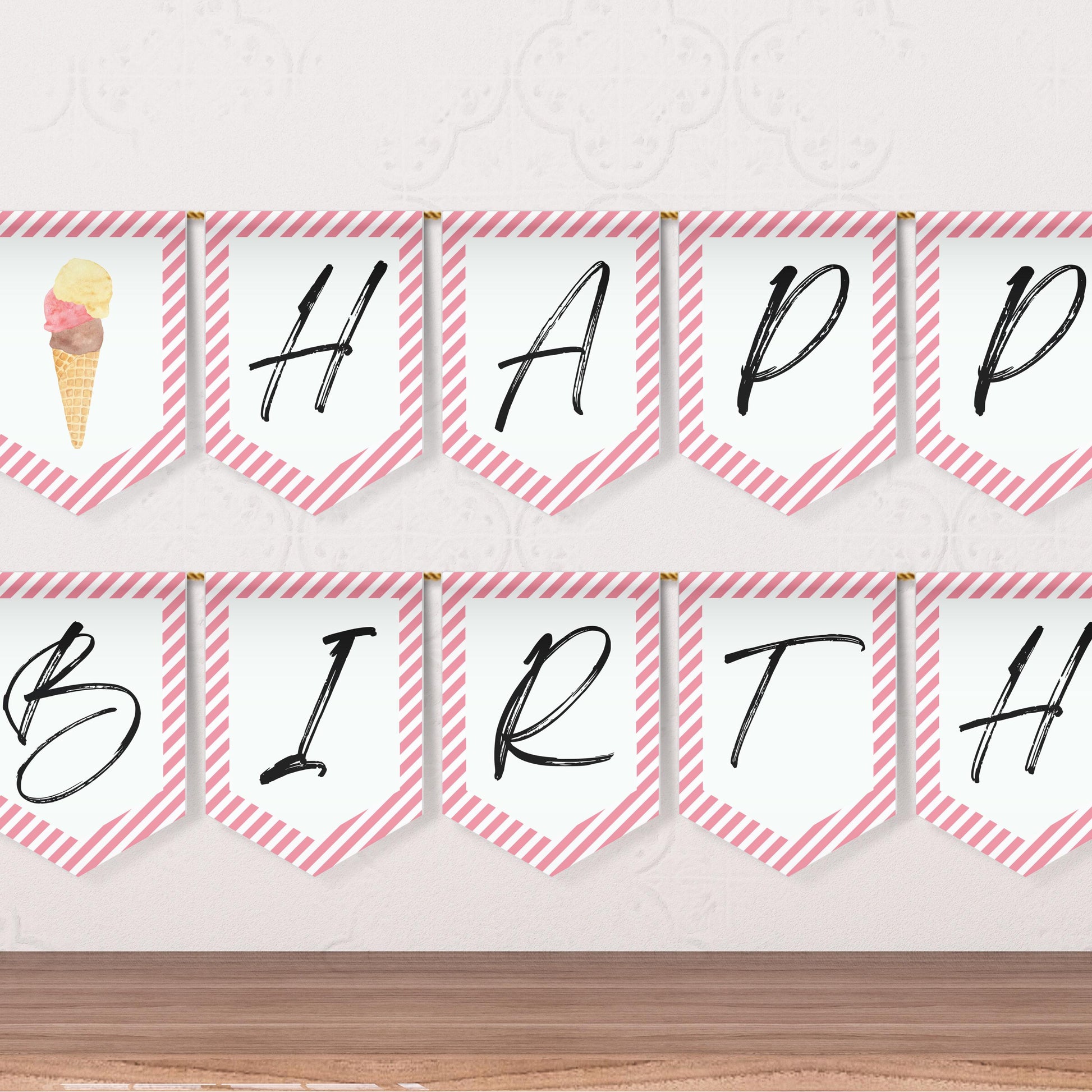Ice Cream Happy Birthday Banner Sweet Party Banner Here's the Scoop Party Scoops of Fun Flag Printable Banner Girl Party Bunting 0002