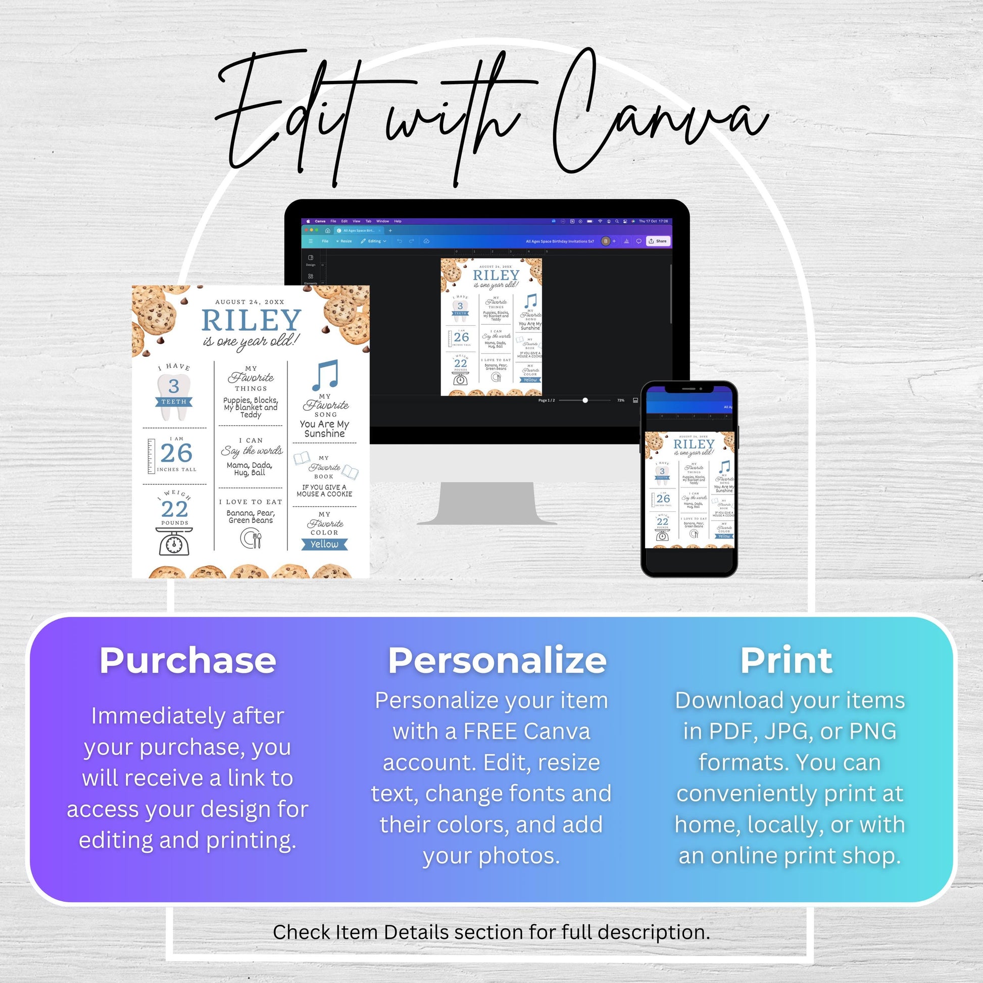 You will receive a PDF with a link to edit your digital design, no printed items will be shipped!