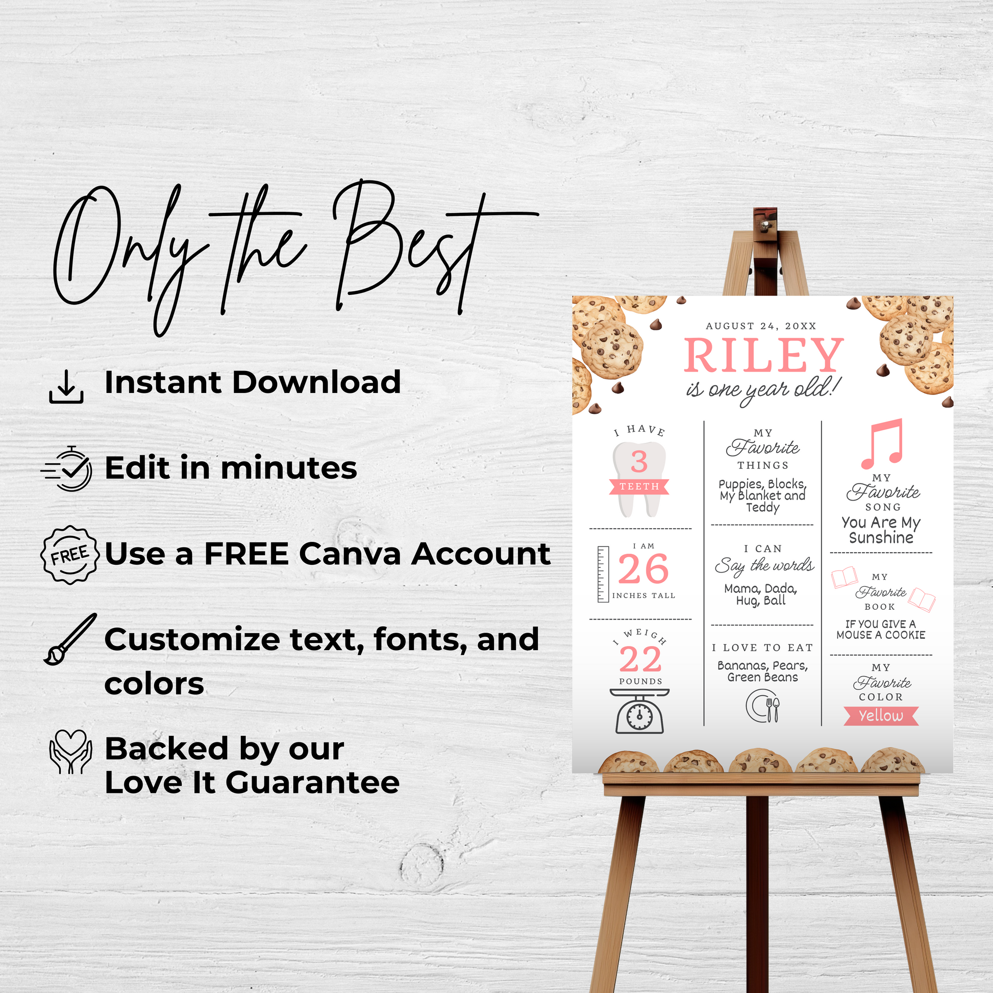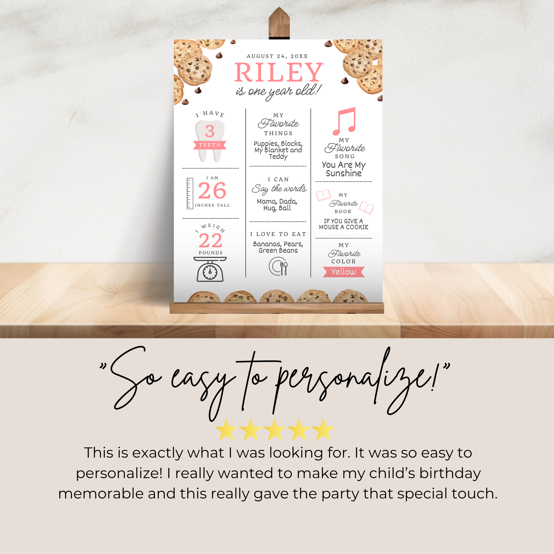 Milestone Board Milk and Cookies First Birthday Sign First Year Milestone Sweet Cookie Birthday Milestone Tough Cookie Birthday Sign 0009