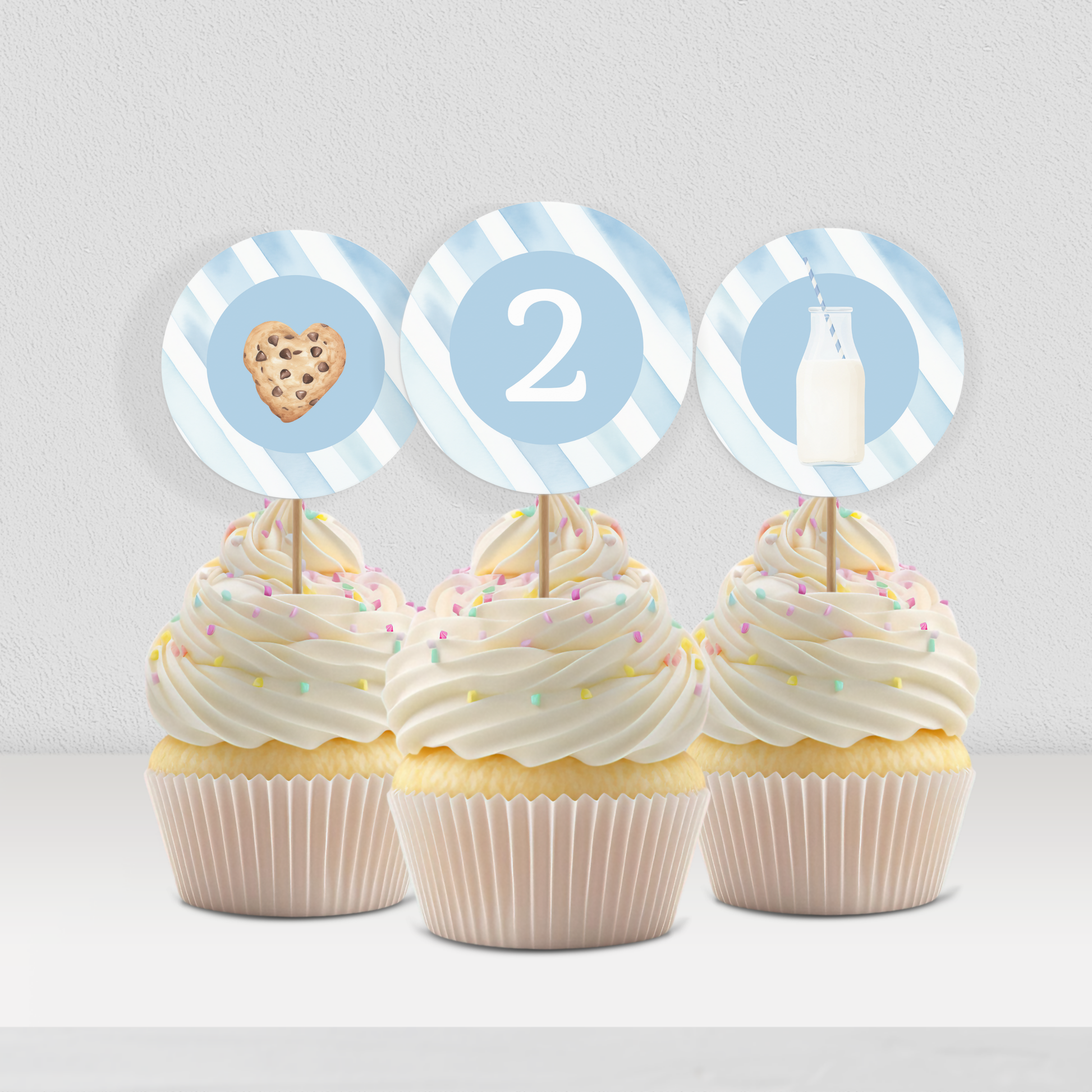 Milk and Cookies Cupcake Toppers: Printable Birthday Party Decorations