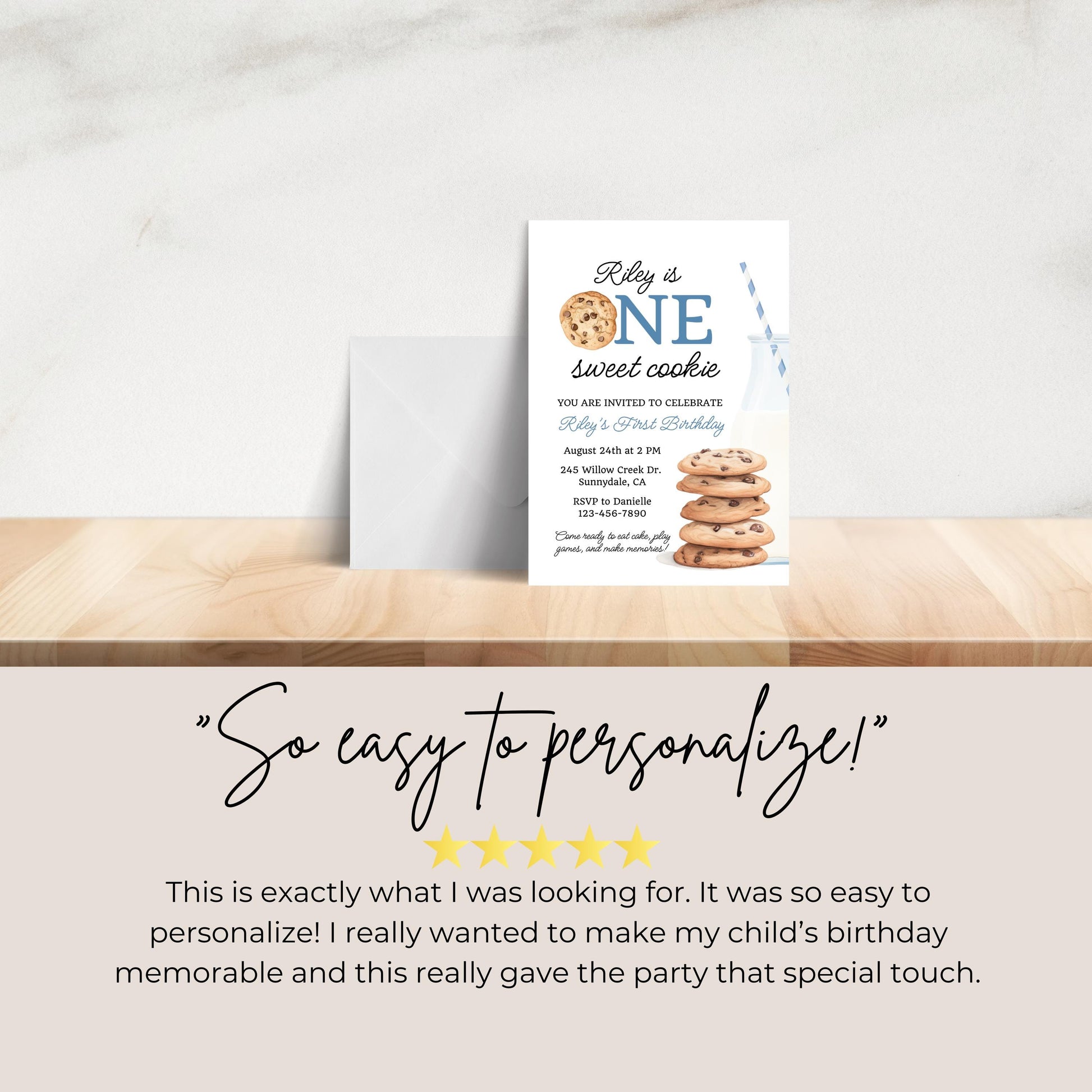 One Sweet Cookie Birthday Invitation First Birthday Boy Milk Cookies Party 1st Birthday Cookie Sweet Celebration Toddler Birthday Cute 0005