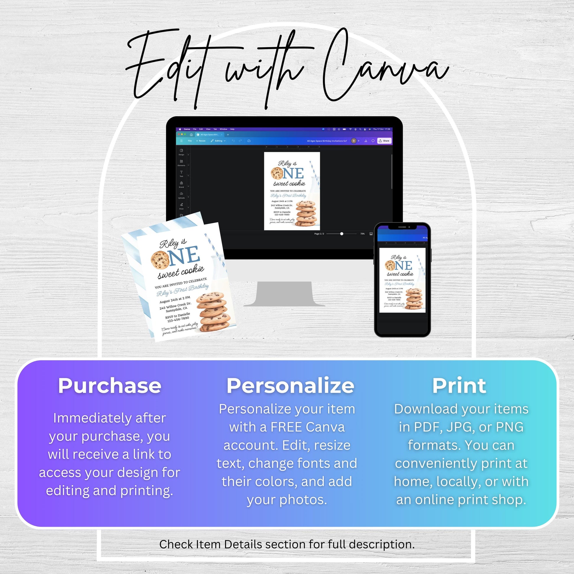 You will receive a PDF with a link to edit your digital design, no printed items will be shipped!