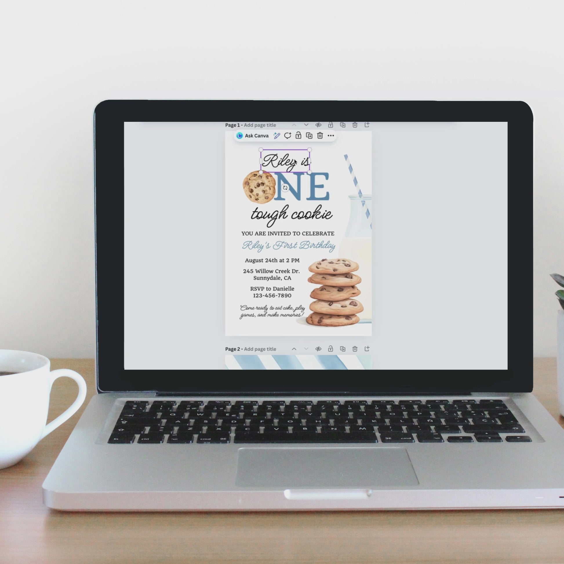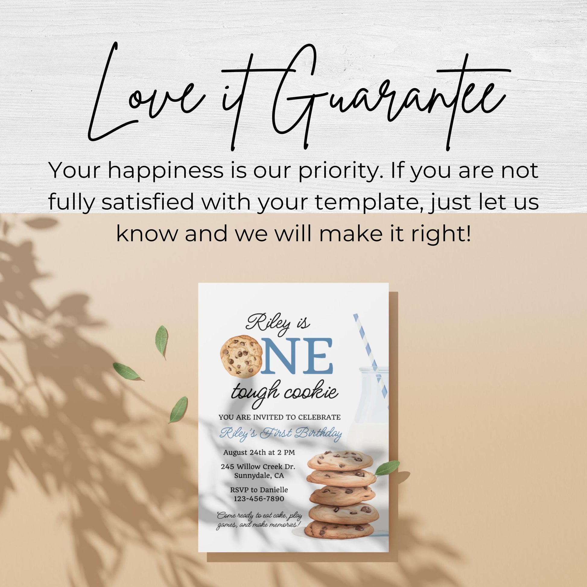 One Tough Cookie Birthday Invitation First Birthday Boy Milk Cookies Party 1st Birthday Cookie Sweet Celebration Toddler Birthday Cute 0005