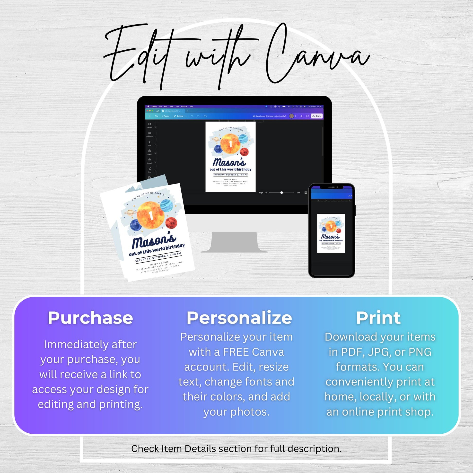 You will receive a PDF with a link to edit your digital design, no printed items will be shipped!