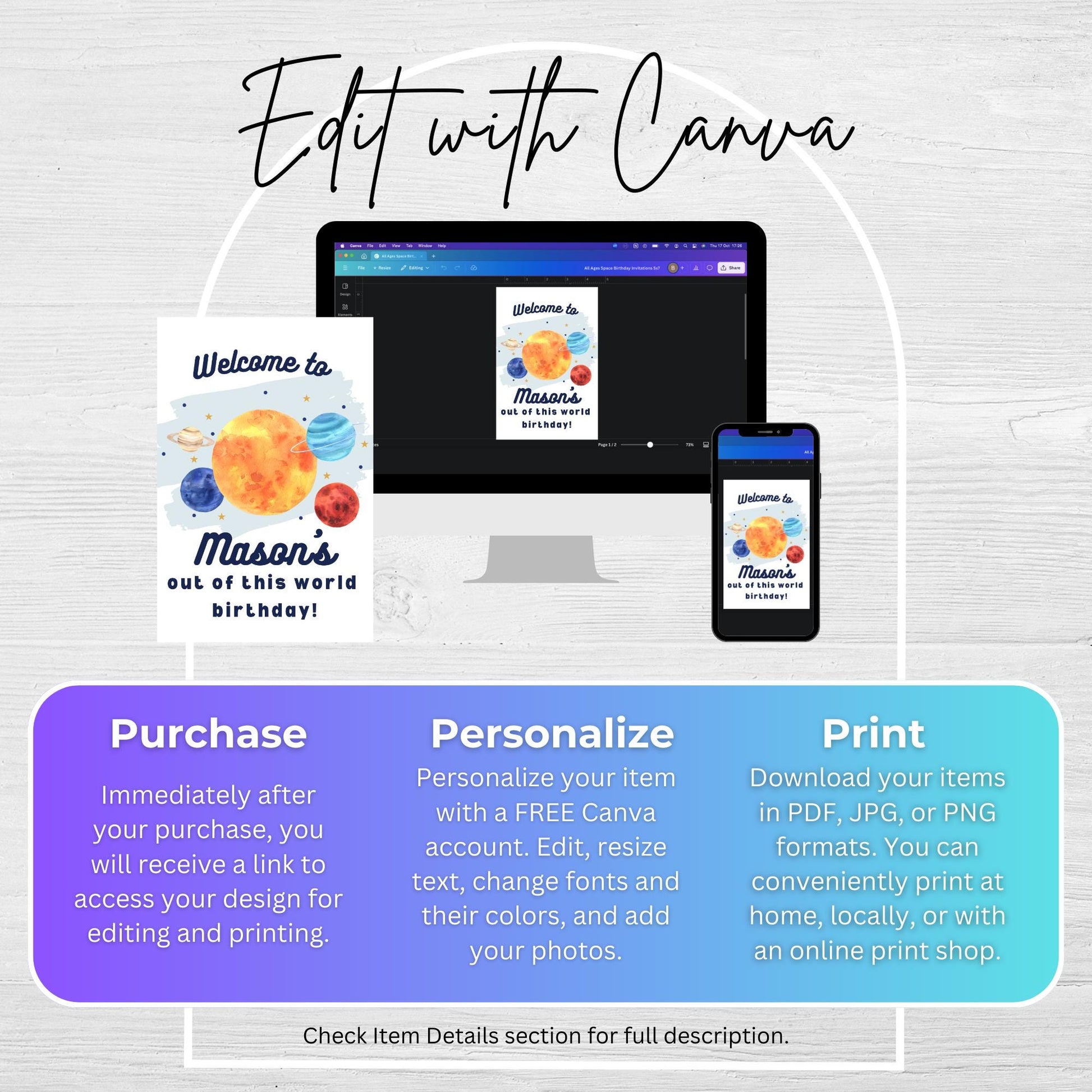 Space Welcome Sign Editable Birthday Party Out of This World Welcome Sign for Boys Birthday Planets Solar System Party Sign Digital 0001