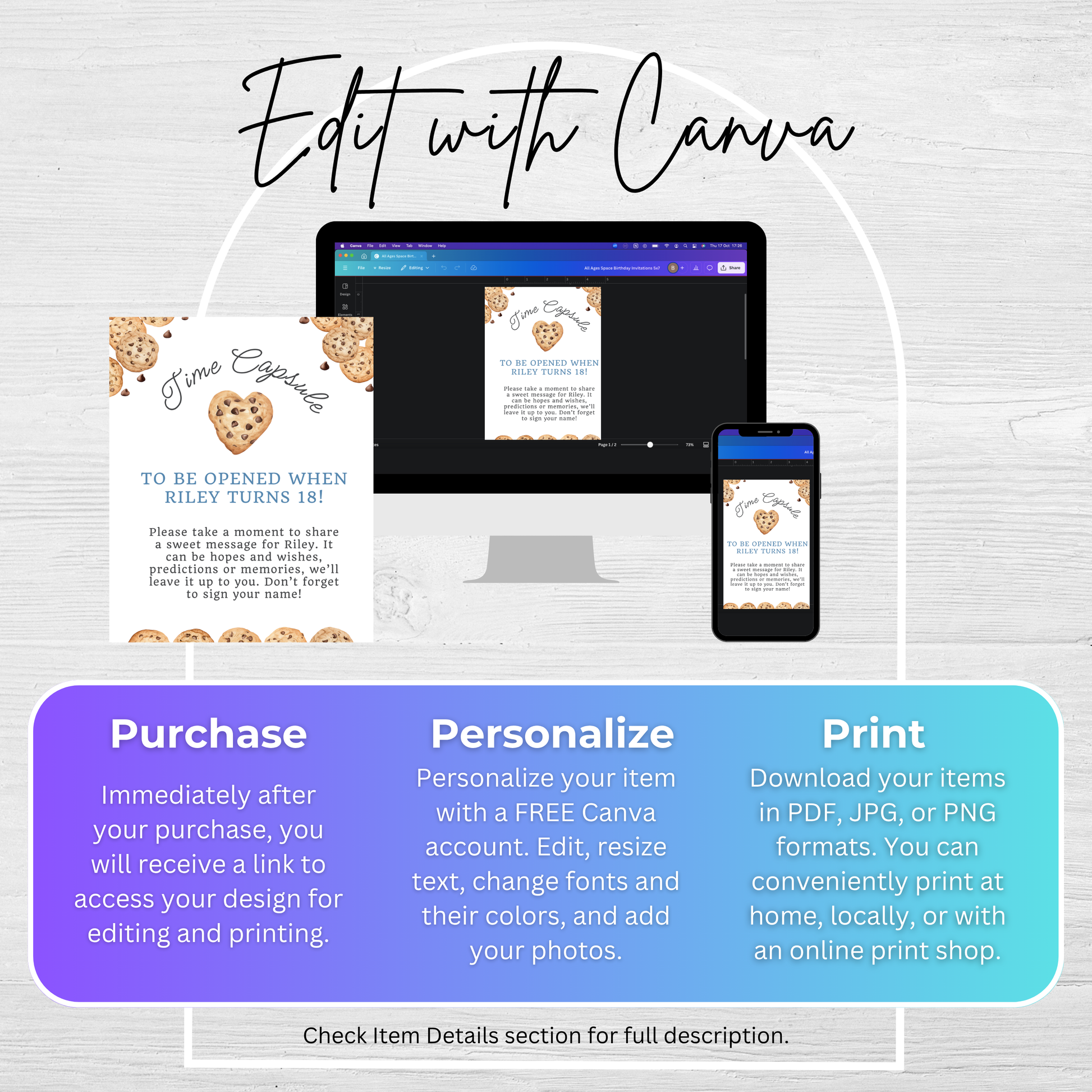 Personalize this Time Capsule Set in minutes, then download and print or send to a print shop. Easily customize using Canva.